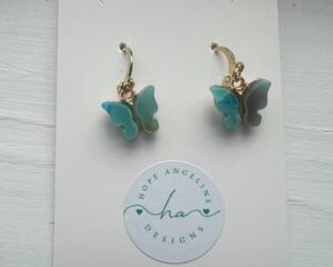 Teal Butterfly Huggie Earrings