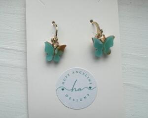 Shades of Green Huggie Butterfly Earrings