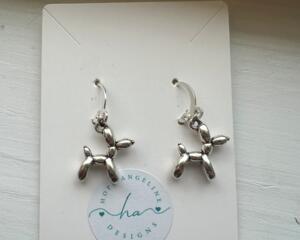 Silver Tone Balloon Dog Earrings