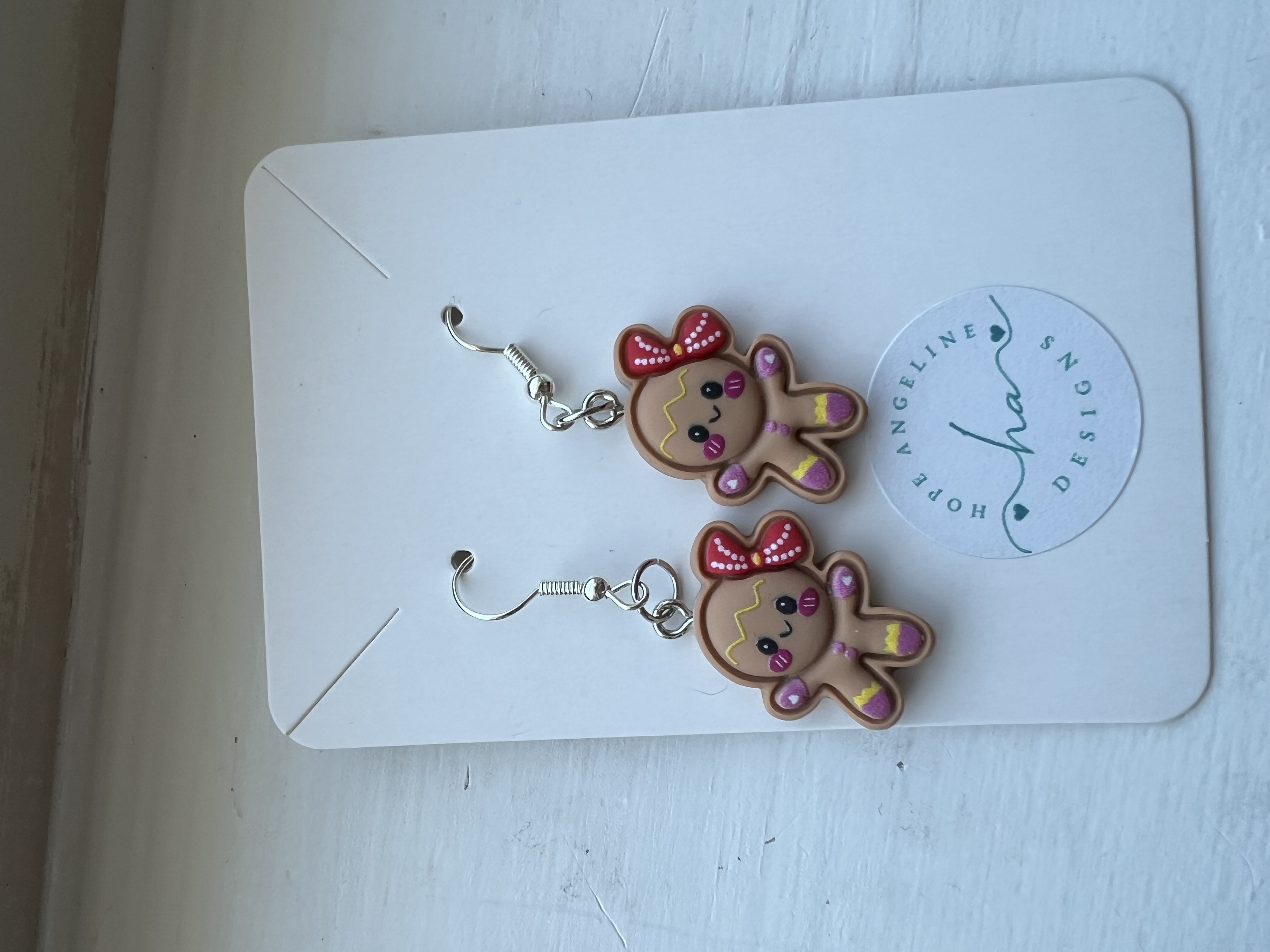 Meet the Gingerbread Cuties — the sweetest little cookies to ever dangle from your ears! These adorable gingerbread girl earrings are full of holiday charm, featuring cheerful pink cheeks, bright bows, and frosting-style details that look straight out of a Christmas bakery.