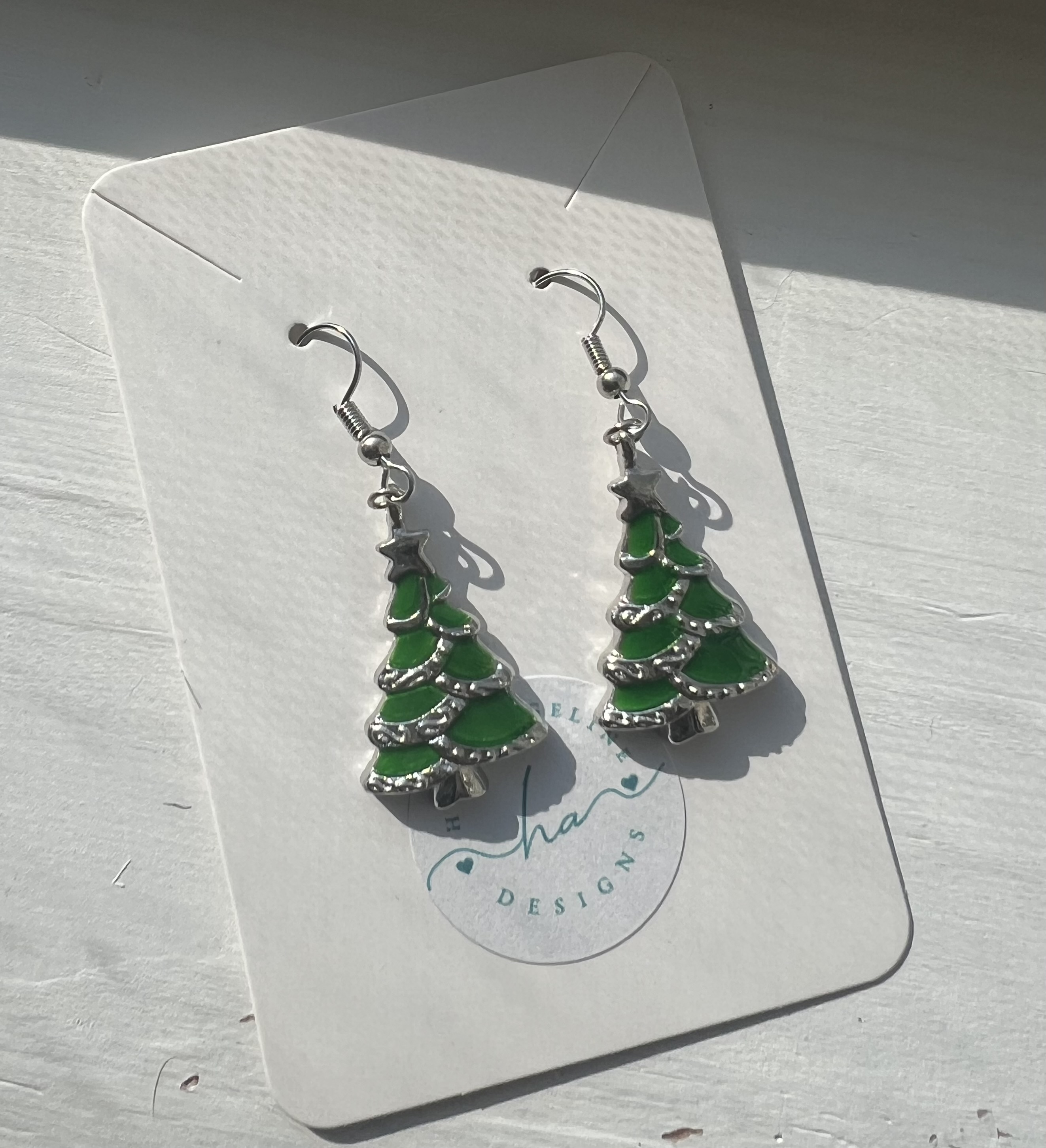 Each pair of Holiday Hug Trees is carefully crafted by hand with attention to every tiny festive detail. The design begins with cute green Christmas tree charms, chosen for their bright color and soft holiday shimmer. Silver accents are added to highlight the tree shape and give each earring a touch of sparkle—just like twinkling lights on a cozy Christmas night.