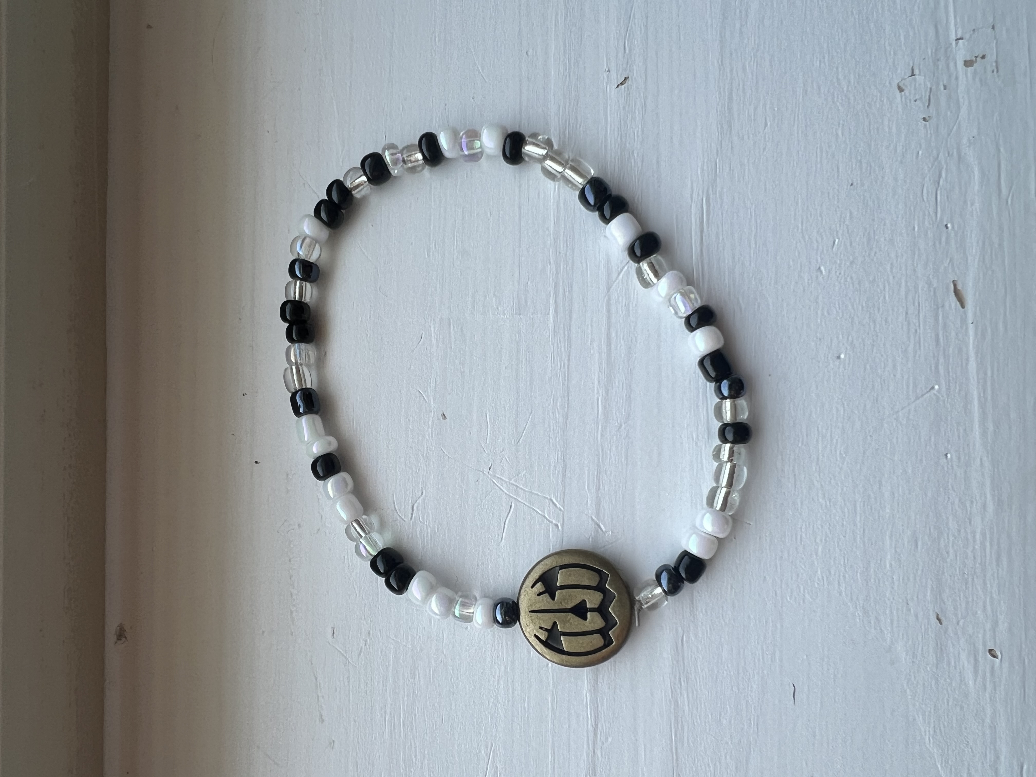 Step into spooky season with the Midnight Pumpkin Bracelet. Made with a sleek mix of black, white, and clear beads, this stretch bracelet captures the mysterious glow of a moonlit Halloween night. At its heart sits a bronze pumpkin charm, adding a festive touch that’s both classic and hauntingly stylish. Lightweight and comfortable, this bracelet is perfect for stacking with other seasonal pieces or wearing solo as a subtle nod to Halloween spirit.