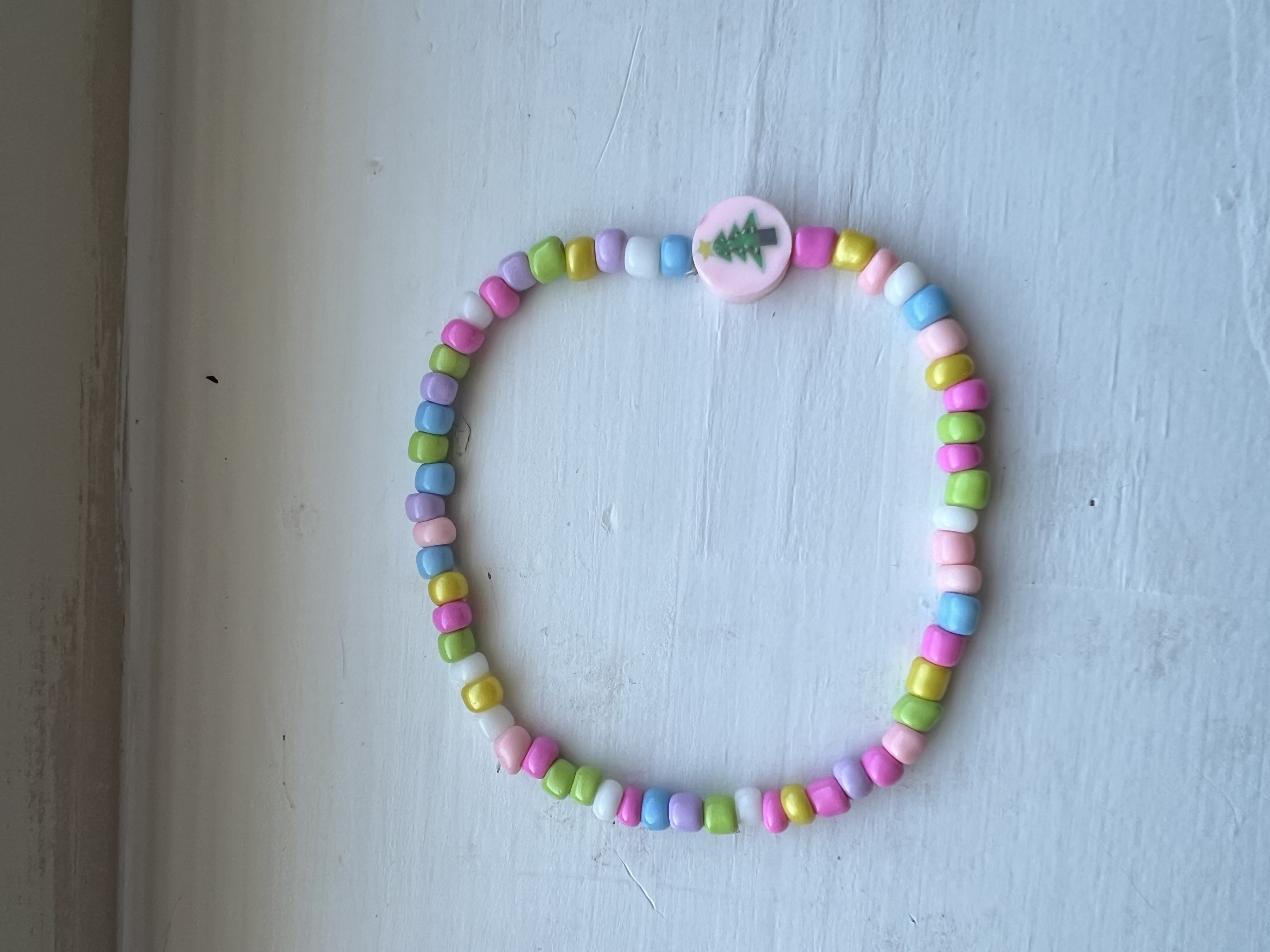 Each bracelet is handmade with care, patience, and a sprinkle of holiday sparkle — a little piece of pastel joy to brighten your season.