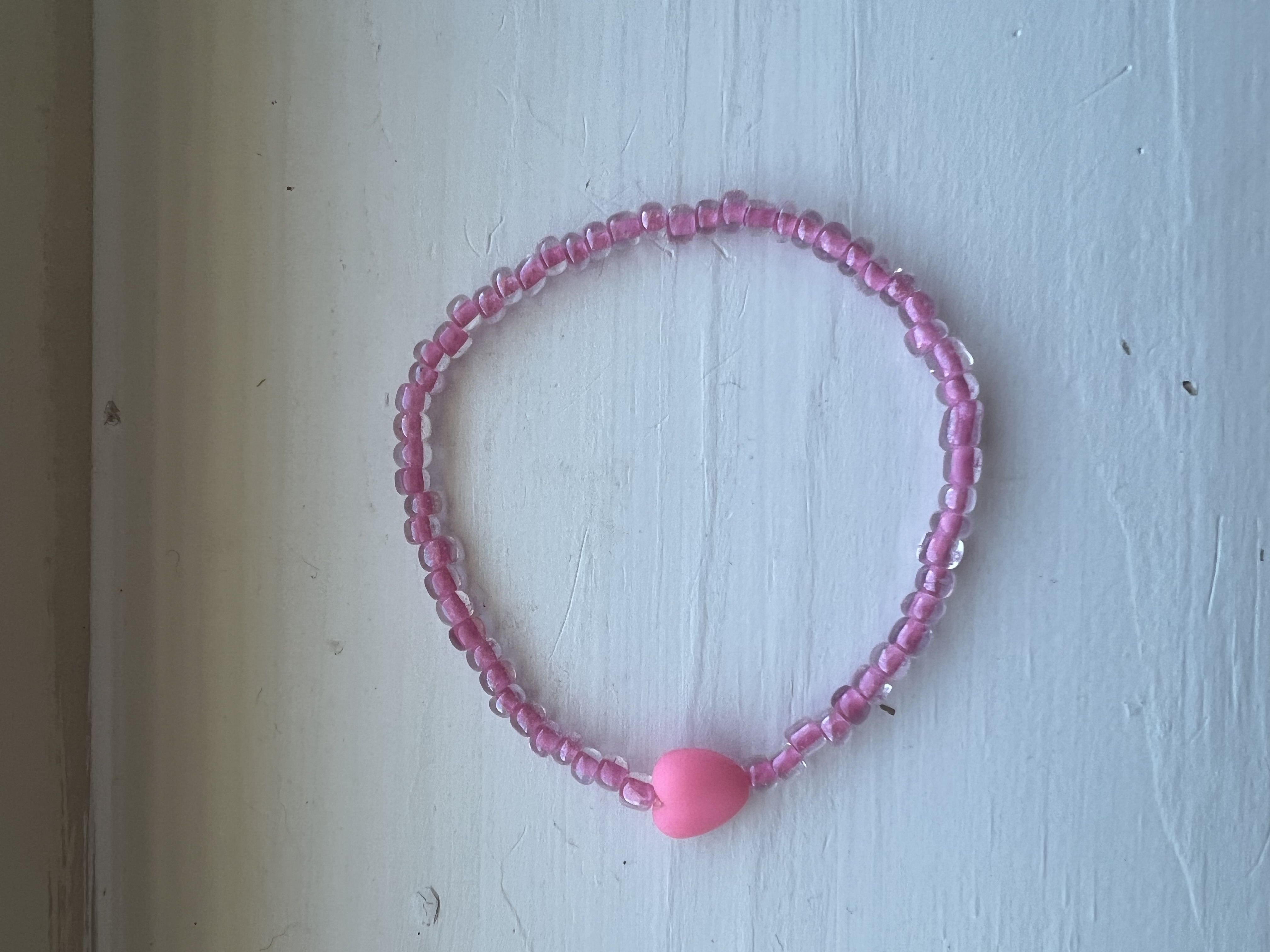 The Pink Promise Valentine Beaded Bracelet is handcrafted using soft pink seed beads, carefully strung on a durable stretch cord for a comfortable slip-on fit. A smooth heart bead is added as the focal point, creating a lightweight, romantic bracelet designed for everyday Valentine wear.